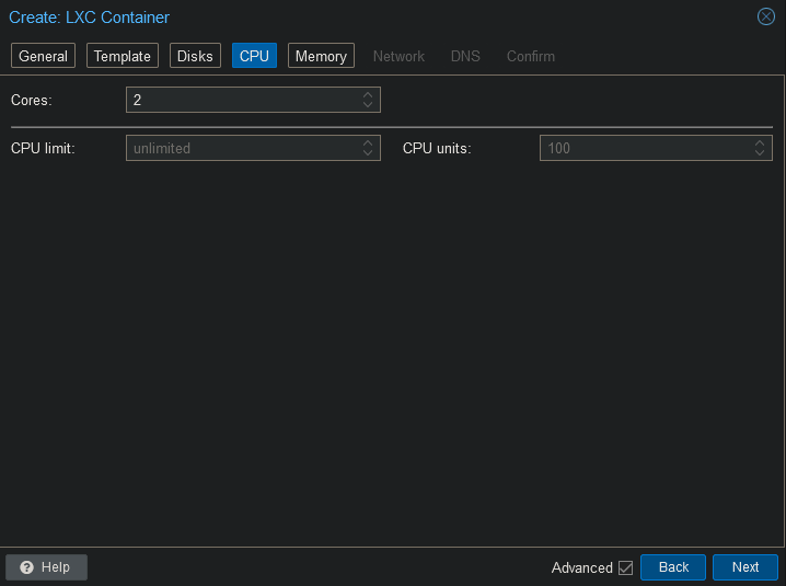 Open the shell on the Proxmox host and run the following command. Change the id to whatever id your container has.