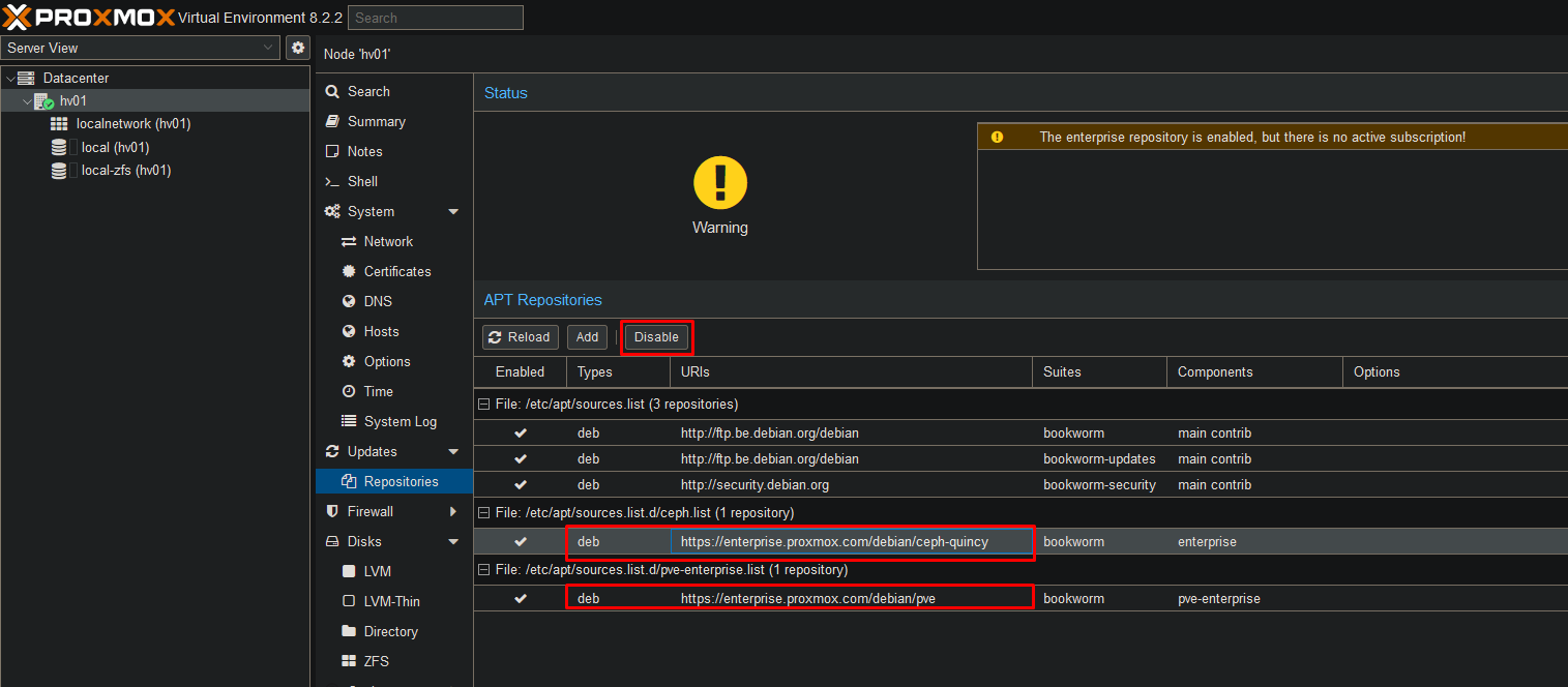 As this is a simple homelab we will disable this repository and add the free one.