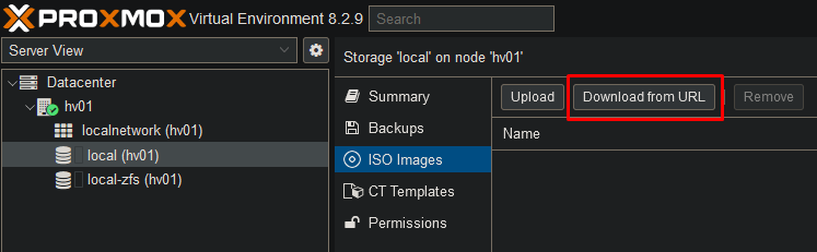 Go to your ISO Images and select “Download from URL”.