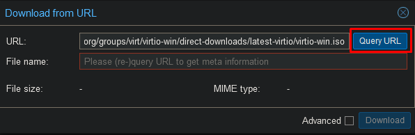 Enter the following URL to download the virtio drivers.