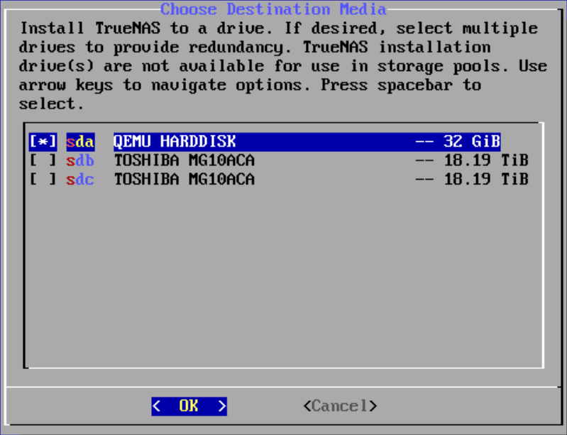 Use the spacebar to select the OS drive and hit enter.
