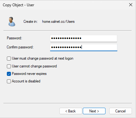Fill in the domain admin user info. It is advised to only use this user on your domain controller and nowhere else.