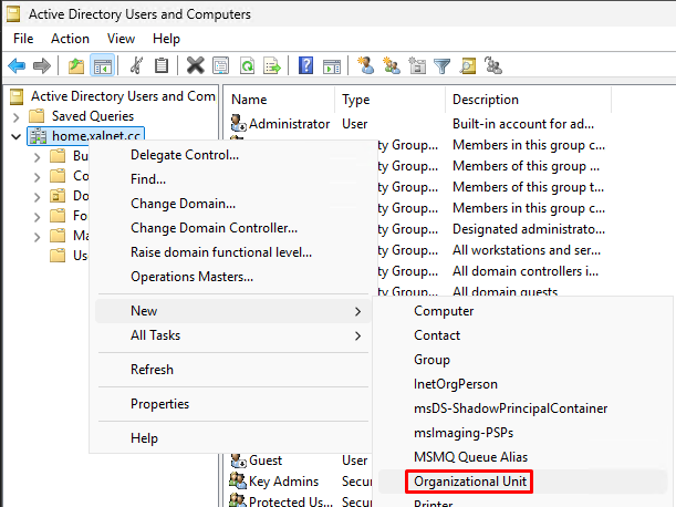 Right click on your domain and click on “New - Organizational Unit”.